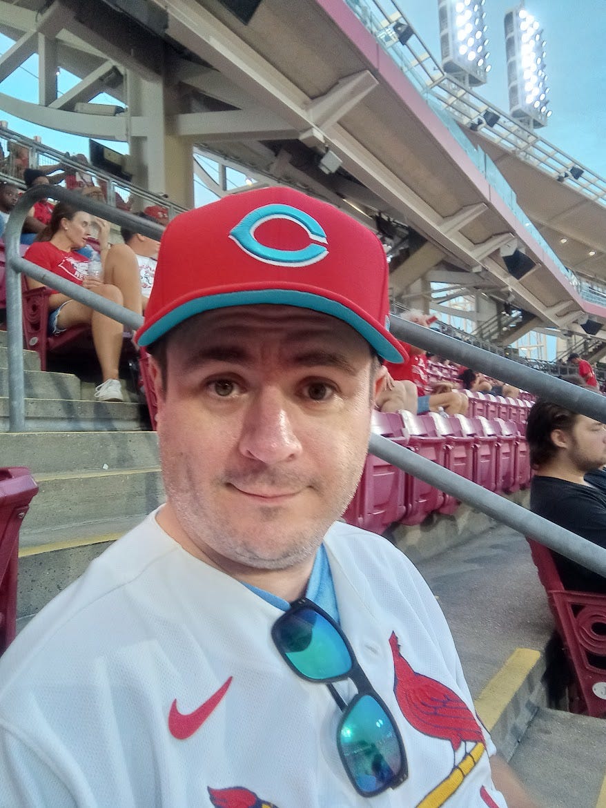The real purpose of tonight’s game was twofold: try out the ballpark and watch the Cardinals play the Reds. I’ve already laid out my sports hierarchy, so if you haven’t read up on that, please do. Of my teams, my Cleveland Guardians seem to be doing the best, with the Reds and Cardinals, well…