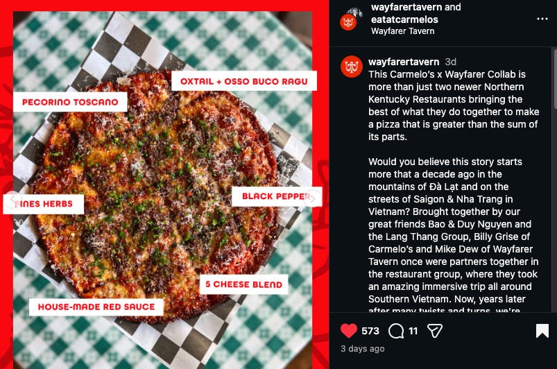 This Carmelo’s x Wayfarer Collab is more than just two newer Northern Kentucky Restaurants bringing the best of what they do together to make a pizza that is greater than the sum of its parts.
