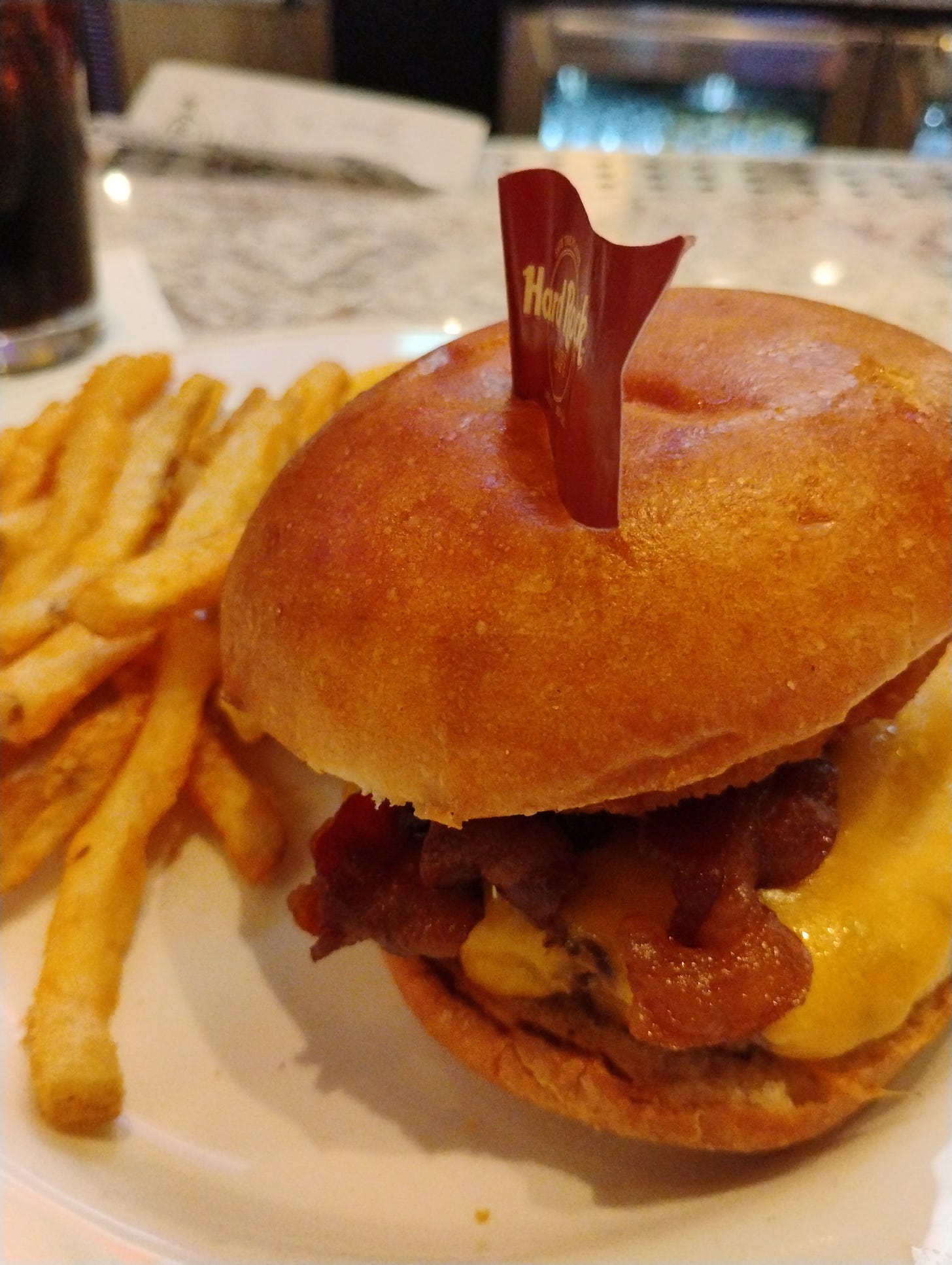 As it was my first time there, I got a $25 credit for slots and because I was in a chatty mood, the guest services people gave me a $20 food voucher. Perhaps to shut up or perhaps because I was excited to be able to get a Hard Rock burger and some fries. We’ll never know.