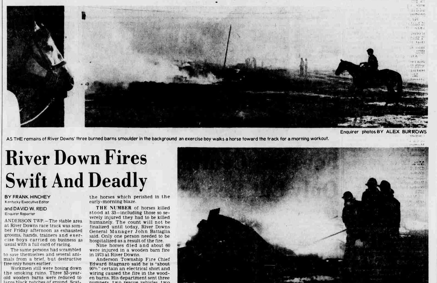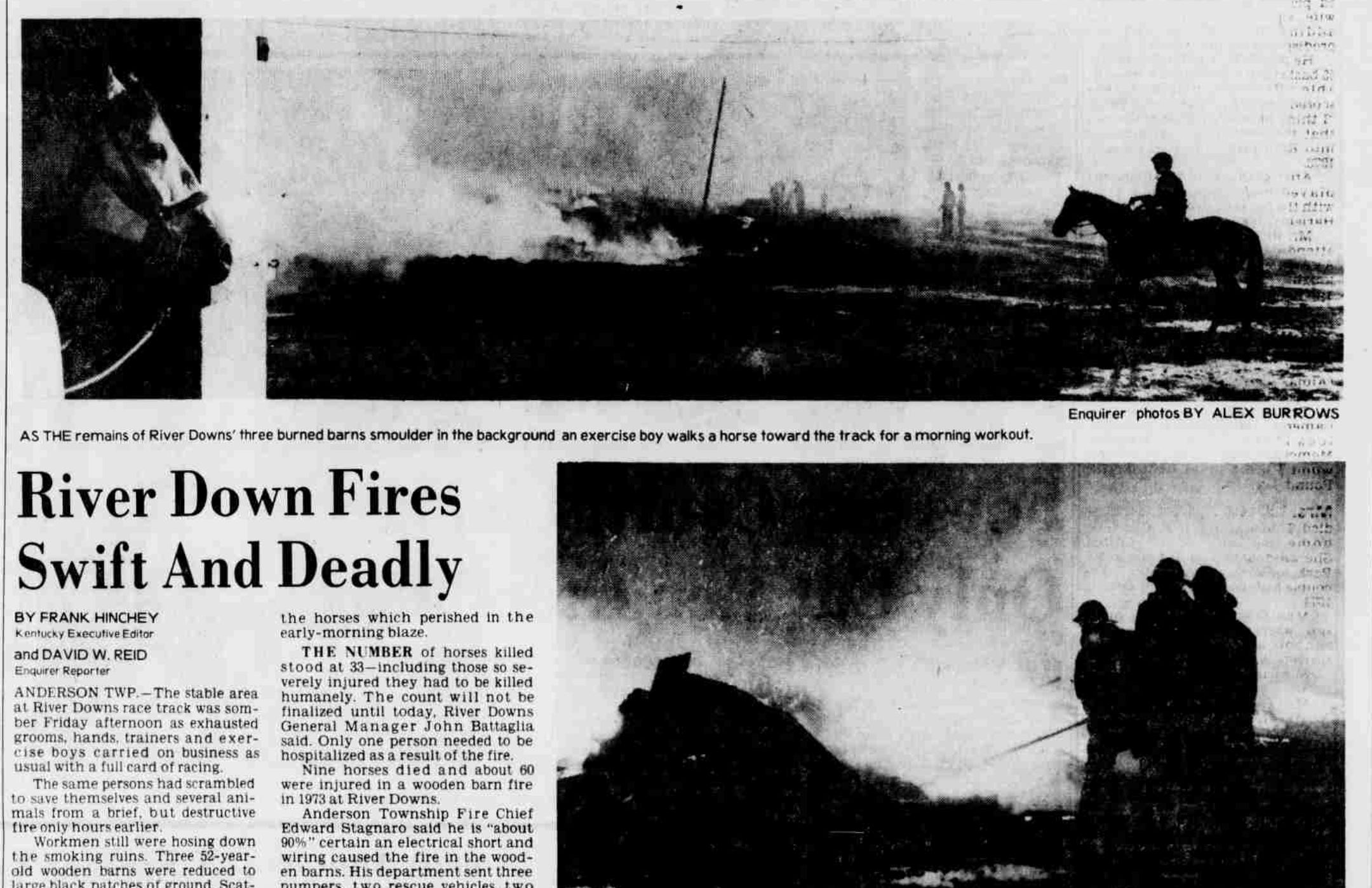 River Downs also had a barn fire in 1978 that resulted in the death of 33 horses. My cousins, who lived in Anderson Township before I was born, experienced the ash, which came down all around Mt. Washington and Anderson Township, the size of dinner plates my cousin Kathy recalls.