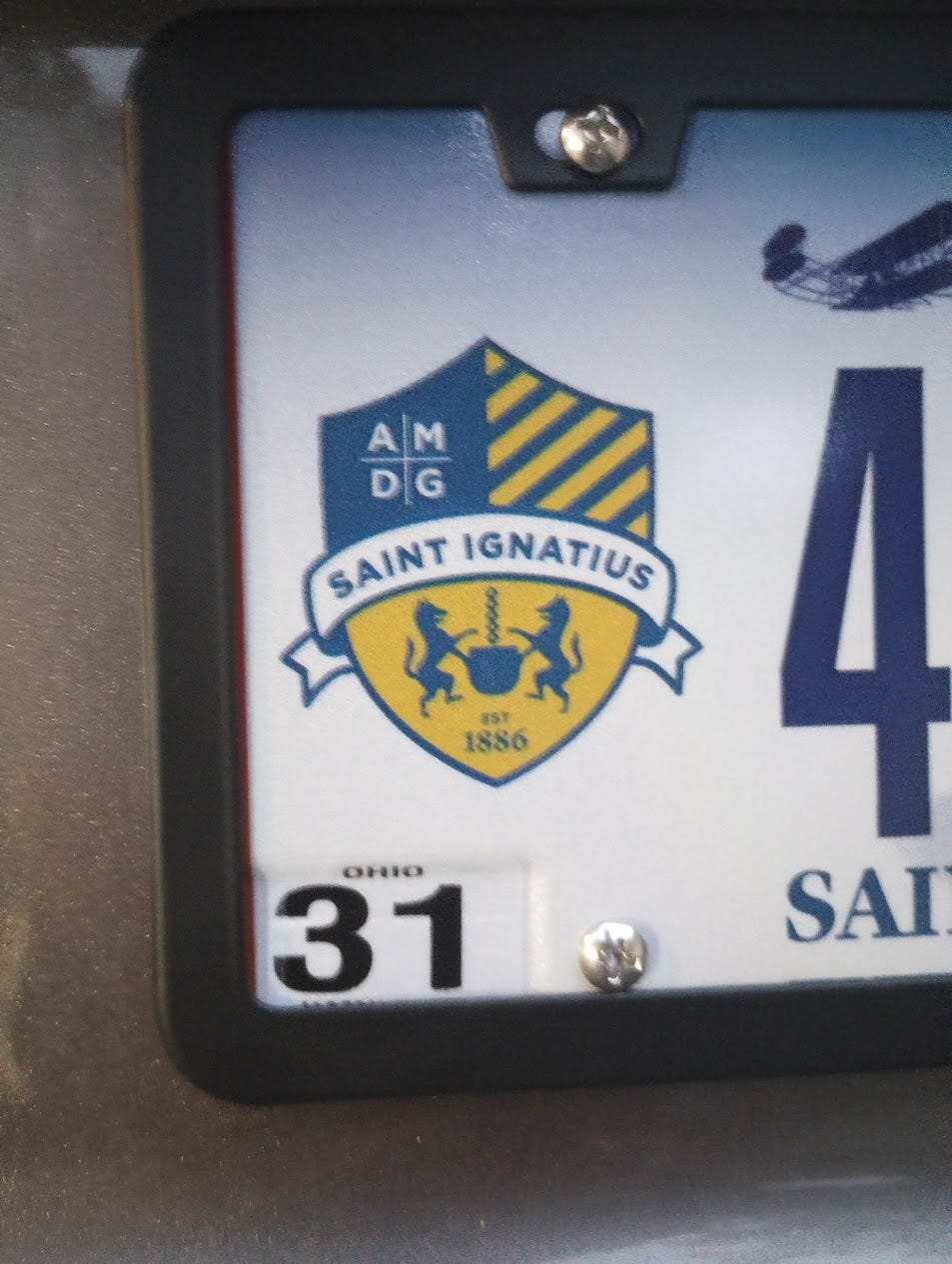 On the official Ohioan front, I’m all licensed and plated. The Saint Ignatius license plate? Glorious. Behold: